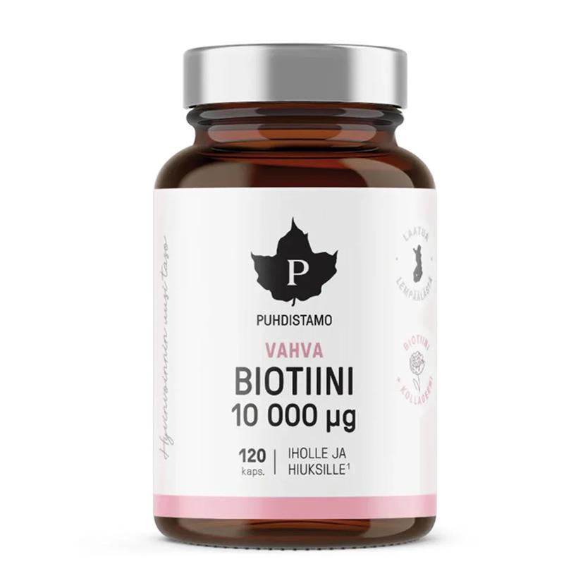 Премиальный биотин от финского бренда Puhdistamo — это высококонцентрированный витамин B7 в удобных капсулах, разработанный для поддержки красоты и общего самочувствия. Каждый вегетарианский капсул содержит 10 000 мкг биотина, что составляет 20 000% суточной нормы, и дополнен гидролизованным коллагеном типа I для усиленной пользы.